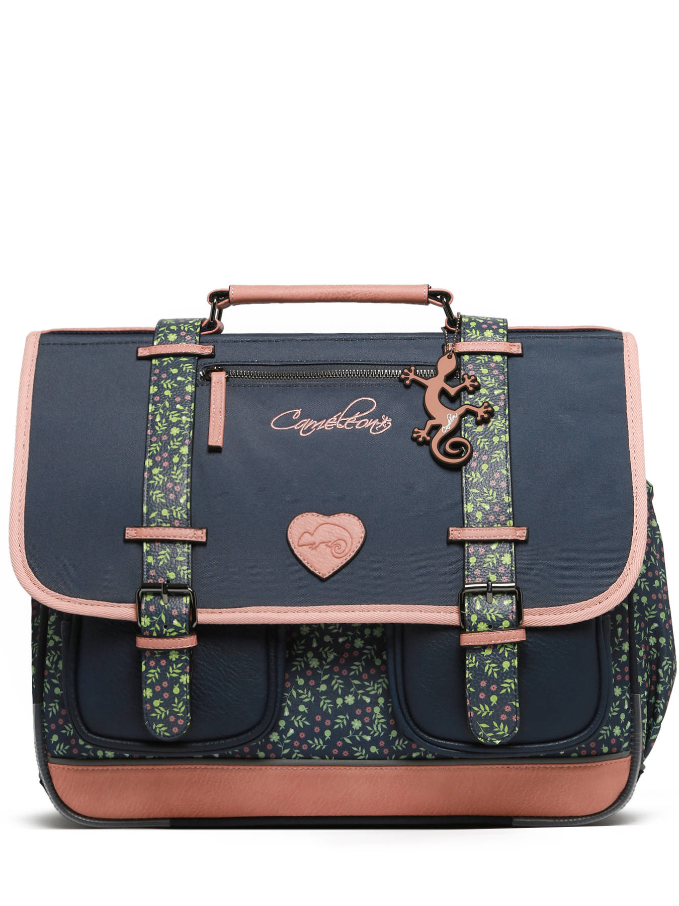 41 cm - 24 liter - 1.33 kg ~ Deze schooltas uit de Vintage Fantasy collectie van het merk Caméléon heeft een breedte van 41 cm. Ideaal vanaf het 4de leerjaar! Dit model heeft een duidelijke vintage look, dankzij twee voorvakjes en de riempjes met gespen. De schooltas beschikt over drie ruime compartimenten, die schriften (24x32 cm), mappen en schoolboeken van A4 formaat kunnen bevatten. Onder de overslagflap bevindt zich ook een uniek opbergvakje, voorzien van een gratis liniaal. De twee kleine ritsvakjes vooraan zijn perfect om een snack of andere kleine spulletjes in te stoppen. Dit model beschikt ook over een naamlabel aan de achterzijde, en kan makkelijk gesloten worden dankzij een dubbel kliksysteem. Voor optimaal comfort zijn de rugzijde en schouderbanden extra gewatteerd. Dankzij enkele reflectoren kan uw kind zich ook veilig in het verkeer begeven. Vintage op z'n mooist!