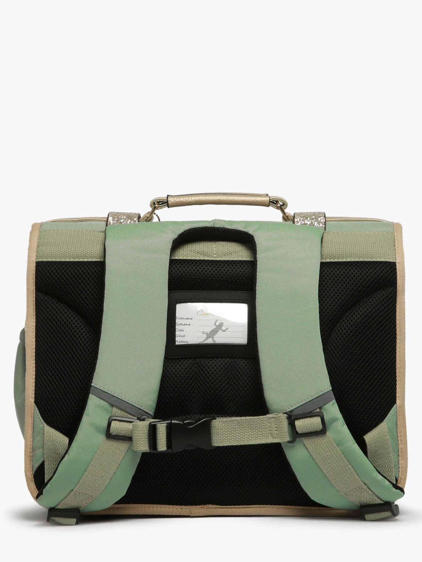 Deze schooltas uit de Vintage Fantasy collectie van het merk Caméléon heeft een breedte van 38 cm. Ideaal vanaf het eerste leerjaar! Dit model heeft een duidelijke vintage look, dankzij de twee voorvakjes in lederlook en de riempjes met gesp. De schooltas beschikt over twee compartimenten, die schriften (24x32 cm) en schoolboeken van A4 formaat kunnen bevatten. Onder de overslagflap bevindt zich ook een uniek opbergvakje, met een gratis liniaal! De twee vakjes vooraan sluiten met rits, en zijn ideaal om een snack of andere kleine spulletjes in te stoppen. Dit model beschikt ook over een naamlabel aan de achterzijde, en kan makkelijk gesloten worden dankzij een dubbel kliksysteem. Voor optimaal comfort zijn de rugzijde en schouderbanden gewatteerd. Dankzij enkele reflectoren kan uw kind zich ook veilig in het verkeer begeven. Vintage op z'n mooist!