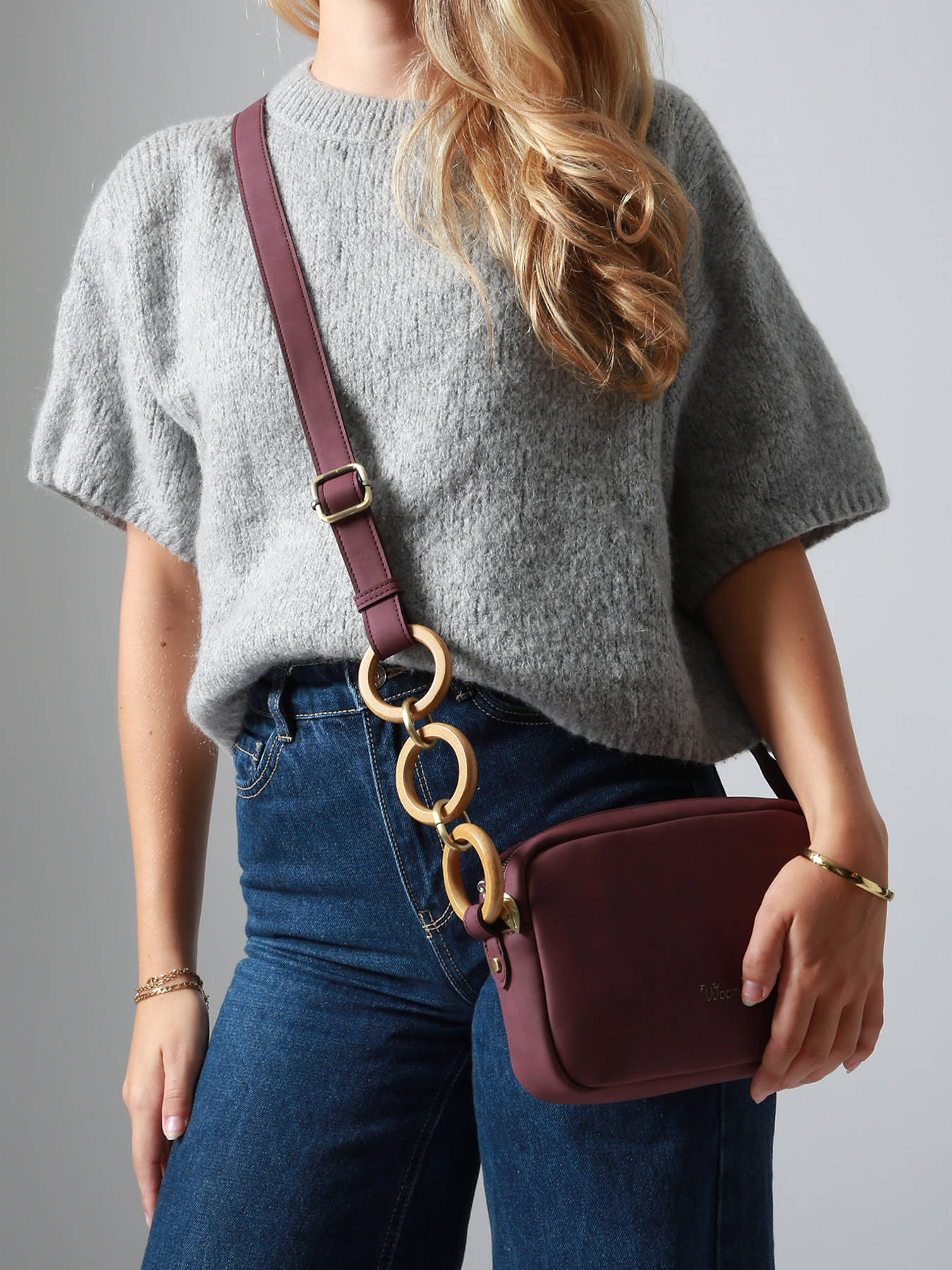Deze cross body tas WOOMEN uit de HELICONIA-lijn, in het camera bag formaat, combineert moderniteit en functionaliteit met subtiele ringdetails. Gemaakt van gerecycled polyurethaan met een voering van katoen en linnen, heeft hij een achtervak, een hoofdvak, een eenvoudig vak en een ritssluitingvak. De verstelbare schouderriem zorgt voor een comfortabel crossbody draagcomfort, waardoor dit accessoire een stijlvolle en verantwoorde must-have is.
