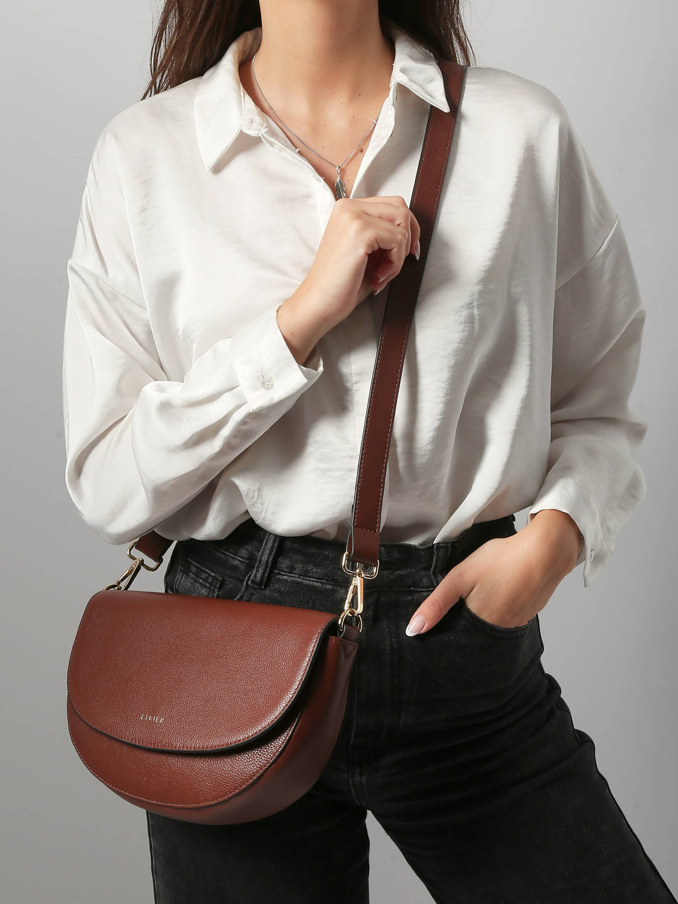 Ontdek de nieuwe ETRIER cross body tas uit de TRADITION lijn, een opvallend accessoire dat elegantie en functionaliteit combineert. Dit herontworpen model valt op door zijn trendsettende en tijdloze ontwerp, ideaal om al je outfits te completeren, zowel voor dagelijks gebruik als voor speciale gelegenheden. Zorgvuldig vervaardigd uit volnerf runderleer, garandeert het uitzonderlijke kwaliteit en een lange levensduur. Wat betreft de praktische aspecten, sluit deze schoudertas eenvoudig met een magnetische drukknoopflap, terwijl je snel toegang hebt tot je essentials. Aan de buitenkant bevindt zich een discrete ritszak aan de achterkant, waarmee je je persoonlijke spullen veilig kunt opbergen. Binnenin vind je een eenvoudig vak en een ritsvak die het organiseren van je belangrijkste items, zoals sleutels, portemonnee of smartphone, vergemakkelijken. De gouden accessoires voegen een vleugje verfijning toe, terwijl het compacte en moderne formaat perfect past bij de behoeften van actieve en elegante vrouwen.