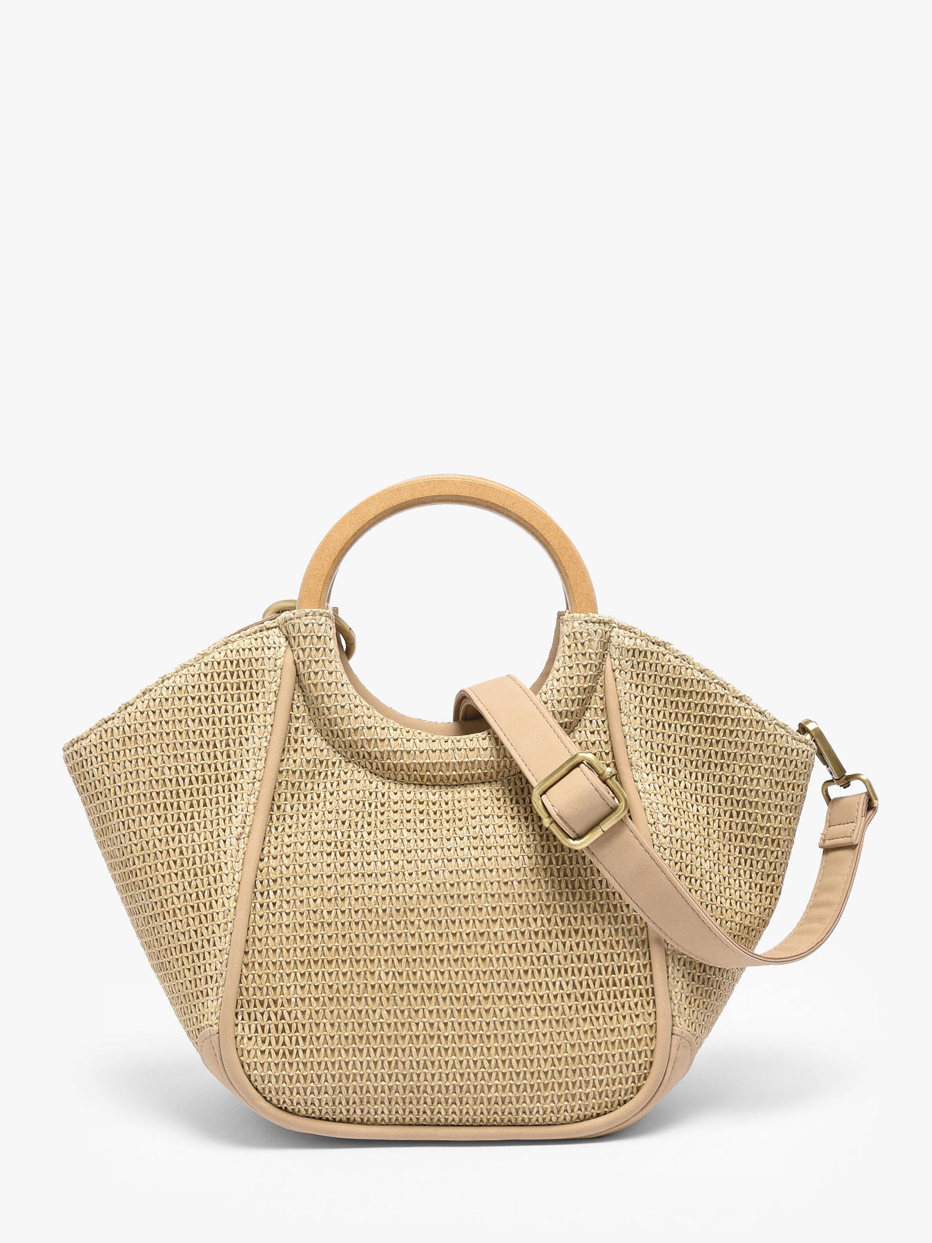 De handtas WOOMEN uit de lijn Crocus Estival combineert elegantie, lichtheid en zomerse stijl. Het hoofdmateriaal van polyethyleen met polyurethaan, in combinatie met de voering van katoen en linnen, zorgt voor stevigheid en comfort. Deze bimateriële tas is voorzien van een ritssluiting, een afneembare polyurethaan band en een houten handvat, waardoor hij aan de hand of als cross body tas gedragen kan worden, afhankelijk van je voorkeur. Binnenin zorgen een ritsvak en een steekvak voor eenvoudig organiseren van je essentials. De bijbehorende parelbag charm geeft een verfijnde afwerking en een zomers vleugje, waardoor deze tas een praktisch en elegant accessoire is om al je zomerse outfits compleet te maken.