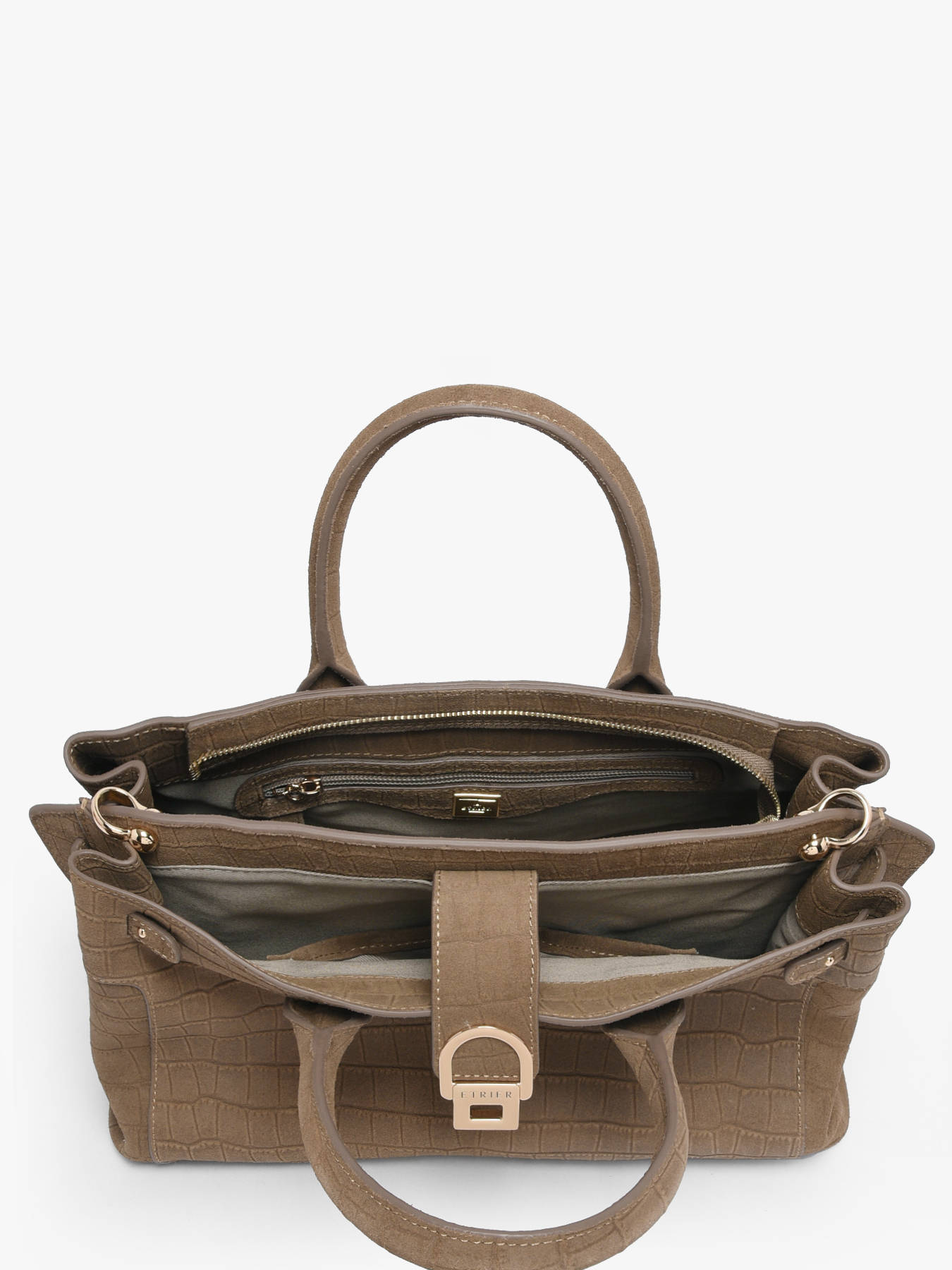 De handtas EQUESTRE CROCO van Etrier is vervaardigd uit suède rundleer met krokodillenprint en biedt een subtiele mix van gedurfde texturen die dit model een verfijnde uitstraling en wilde charme geven. Voorzien van een ritssluiting en een flap met sluiting, garandeert hij dagelijkse veiligheid en elegantie. De hoogte van het handvat is 12 cm, met een verstelbare en afneembare schouderriem voor een veelzijdige draagwijze, in de hand of als cross body tas. Binnenin zorgen twee doordachte compartimenten, samen met twee steekvakken en een ritsvak, voor een optimale organisatie. Dit model is het ruimste uit de Equestre Croco-lijn en wordt verfraaid met verfijnde gouden afwerkingen. Hier afgebeeld in maat M, is hij ook verkrijgbaar in maat S om aan alle wensen te voldoen.