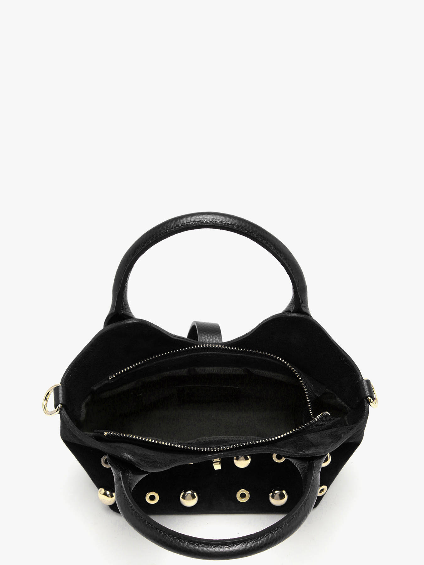De handtas VELVET STUDS MILANO, gemaakt van rundsleer, combineert verfijning en praktisch gebruik. De elegante buitenkant is voorzien van een combinatie van ritssluiting, sluiting en flap, wat optimale veiligheid biedt en tegelijk een verfijnde toets geeft. Het handvat van 12,5 cm hoogte zorgt voor comfortabel dragen in de hand, terwijl de verstelbare en afneembare schouderriem een praktische optie biedt om de tas als cross body tas te dragen, afhankelijk van je wensen. Binnenin zorgen een ruim vak en een vak met ritssluiting voor een eenvoudige maar efficiënte organisatie van je essentials. Deze tas belichaamt een moderne en tijdloze stijl, perfect om de actieve vrouw dagelijks met elegantie en veelzijdigheid te begeleiden.