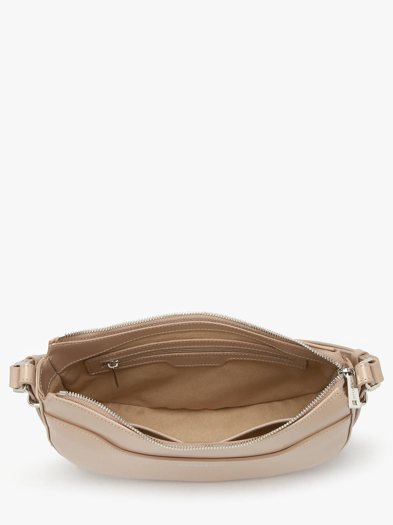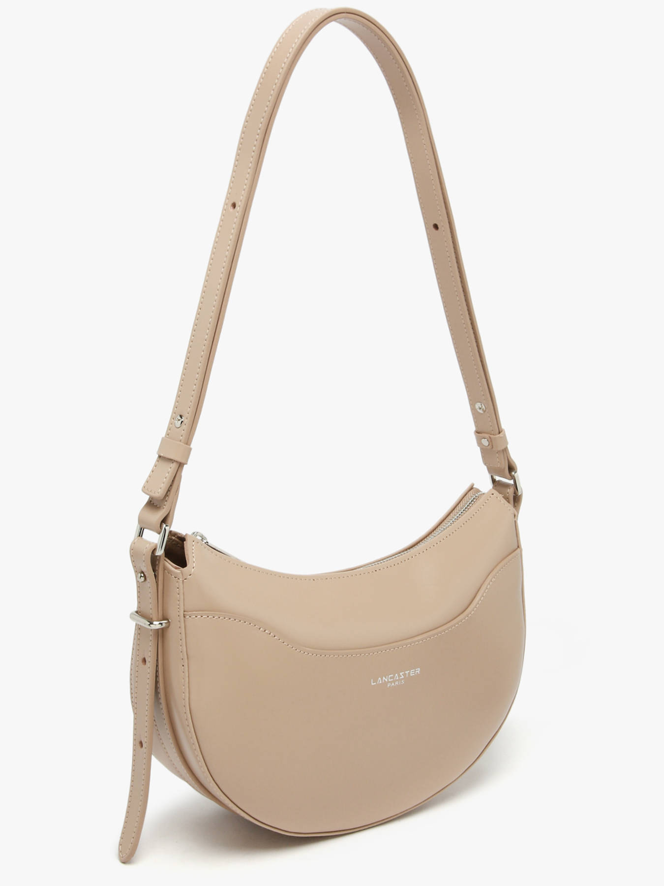 Wil je gaan voor een chique en elegante look. Ga dan voor deze prachtige schoudertas uit de Suave-lijn van Lancaster. Het bekende Franse merk biedt je dit nieuwe seizoen een dameshandtas van glad glanzend rundleer. Je zult dol zijn op de halve maanvorm waarin u al je dagelijkse benodigdheden in passen zoals portemonnee, telefoon en sleutels. Binnenin deze Lancaster schoudertas vind je twee enkele steekvakken en een vak met ritssluiting om kleine spullen in op te bergen. Draag deze schoudertas van Lancaster Suave naar keuze cross-body of onder de arm dankzij de verstelbare schouderriem en combineer hem met een trendy outfit.